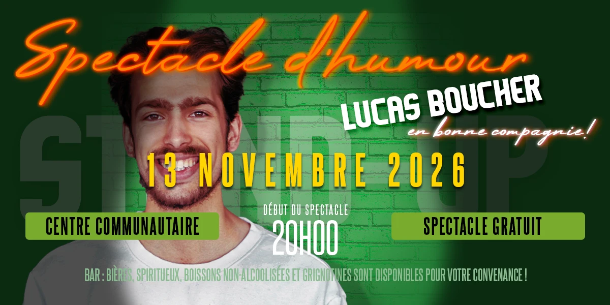 L'ultime soirée d'humour de 2026 ! On termine l'année en beauté ! Le 13 novembre marque la grande finale de notre série de spectacles. Pour cette dernière représentation de la saison, Lucas Boucher vous réserve un plateau explosif pour finir sur une note grandiose. C’est votre dernière chance de l’année pour profiter de cette ambiance [...]